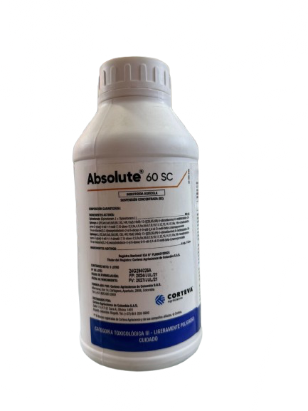 Absolute 60 SC es un insecticida agrícola de amplio espectro formulado con spinetoram, diseñado para el control rápido y contundente de plagas de insectos, especialmente larvas de lepidópteros, dípteros y trips que causan daño en hojas y tejidos vegetales. Su acción por contacto e ingestión provoca excitación neurológica y muerte de insectos, contribuyendo a proteger la sanidad del cultivo y mejorar el rendimiento.