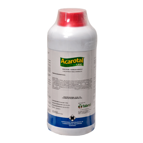 Acarotal es un insecticida‑acaricida agrícola formulado con abamectina (18 g/L) en concentrado emulsionable (EC), diseñado para el control eficaz de ácaros y ciertos insectos plaga por ingestión y contacto. Ofrece acción translaminar y sistémica localizada, lo que permite proteger el follaje y tejidos vegetales frente a infestaciones en cultivos como rosas, frutales, hortalizas, café y papa, reduciendo el daño por alimentación de ácaros y otros artrópodos.