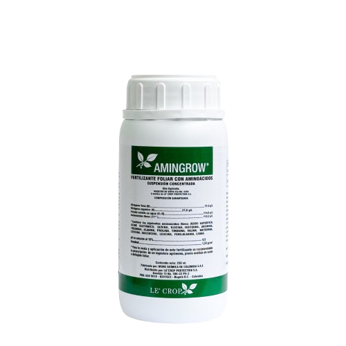 Amingrow es un bioestimulante agrícola formulado a base de aminoácidos, diseñado para potenciar el crecimiento, el vigor y la recuperación fisiológica de los cultivos. Su aplicación favorece procesos metabólicos esenciales, mejora la tolerancia al estrés y contribuye a un desarrollo más equilibrado y eficiente, reflejándose en plantas más sanas y productivas.