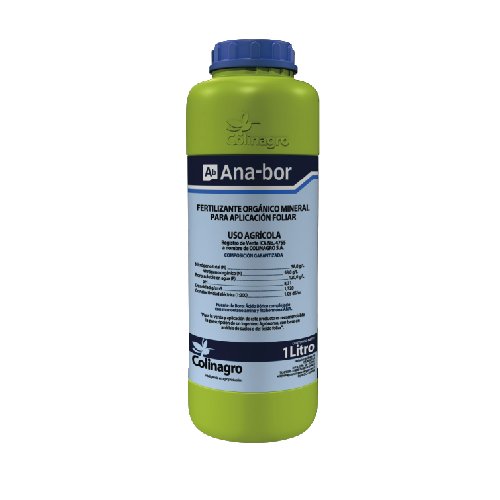 ANABOR es un fertilizante foliar líquido formulado con boro complejado y ácido naftalenacético (ANA), diseñado para ser una fuente eficiente de boro y regulador fisiológico que favorece la floración, fructificación y cuajado de frutos, estimulando procesos reproductivos y mejorando la calidad de cosecha en cultivos agrícolas.