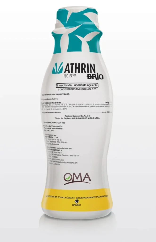Athrin es un insecticida agrícola de amplio espectro formulado para el control técnico de insectos plaga por contacto e ingestión. Su ingrediente activo principal pertenece al grupo de los piretroides sintéticos, lo que le permite actuar de forma rápida y efectiva sobre una amplia gama de insectos que afectan cultivos, protegiendo el follaje, tallos y órganos productivos.