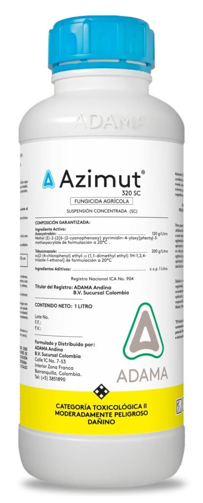 Azimut 320 SC es un fungicida agrícola de amplio espectro formulado como suspensión concentrada (SC) que combina dos ingredientes activos para ofrecer acción preventiva, curativa y translaminar en el control de enfermedades fúngicas comunes en múltiples cultivos.