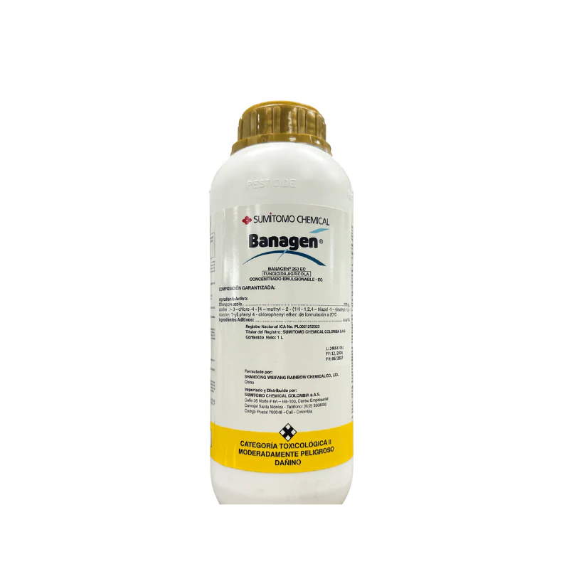 Banagen 250 EC es un producto diseñado para el manejo de fitopatías foliares en cultivos sensibles, incluyendo banano y plátano (donde controla Sigatoka negra y Sigatoka amarilla), uchuva (mancha gris causada por Cercospora spp.), rosas (mildeo polvoso), cebolla (amarillera por Alternaria porri), fríjol (roya) y arroz (manchado de grano), entre otros cultivos. Su ingrediente activo, difenoconazol, pertenece al grupo de los triazoles y actúa inhibiendo la biosíntesis del ergosterol, un componente esencial de las membranas celulares de los hongos, interrumpiendo el crecimiento del micelio y reduciendo la infección en tejidos ya afectados.