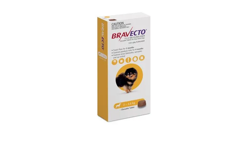 Tableta masticable de larga duración contra pulgas y garrapatas diseñada para perros de peso muy bajo. Ofrece tres meses de protección efectiva con una sola dosis oral.