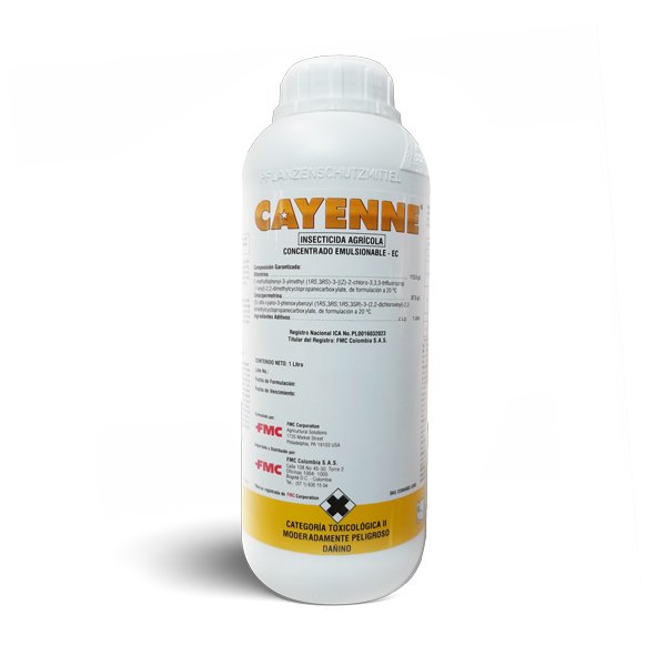 Cayenne EC es un producto agrícola desarrollado para el manejo profesional de insectos plaga en cultivos como hortalizas, frutales, cereales y otros cultivos de alto valor, ofreciendo eficacia sistémica y de contacto que asegura el control de insectos durante todas las etapas críticas del desarrollo del cultivo. Su formulación combina principios activos de alta calidad con propiedades que mejoran la absorción, translocación y persistencia del producto, garantizando que los insectos que se alimentan de hojas, flores, frutos o tallos sean eliminados de manera efectiva. Esto permite proteger el crecimiento vegetativo, mejorar la calidad de los frutos, prevenir la transmisión de enfermedades por plagas y optimizar el rendimiento y la rentabilidad del cultivo, asegurando cosechas más saludables, productivas y de alta calidad.