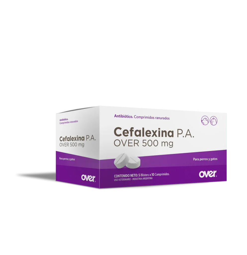 Cefalexina 500 mg es un antibiótico de amplio espectro perteneciente al grupo de las cefalosporinas de primera generación, indicado para el tratamiento de infecciones bacterianas en perros y gatos. Es altamente eficaz contra bacterias Gram positivas y algunas Gram negativas que afectan la piel, el tracto respiratorio, el sistema urinario y los tejidos blandos, siendo una opción segura y confiable en la práctica clínica veterinaria.