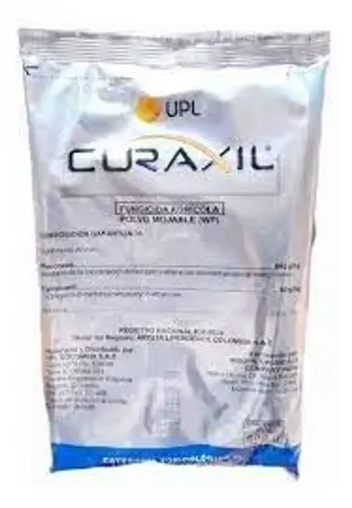 Curaxil es un fungicida agrícola desarrollado para el manejo eficaz de enfermedades fungosas que afectan cultivos de importancia económica, especialmente aquellas causadas por oomicetos como Phytophthora y Pythium. Su formulación combina ingredientes activos de acción sistémica y de contacto, lo que permite una protección integral de la planta. La fracción sistémica es absorbida y traslocada a través de los tejidos vegetales, brindando protección interna, mientras que el componente de contacto actúa en la superficie, formando una barrera protectora que impide nuevas infecciones.