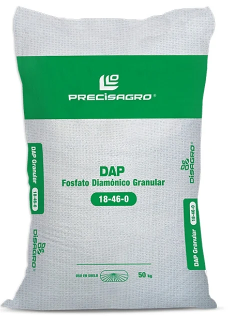 Fosfato Diamónico DAP de Precisagro es un fertilizante edáfico sólido a base de fosfato diamónico (DAP), que aporta una fuente altamente eficiente de fósforo y nitrógeno desde el inicio del cultivo. Está formulado para liberar rápidamente nutrientes esenciales al suelo, favoreciendo un desarrollo radicular vigoroso, un crecimiento vegetativo temprano balanceado y un establecimiento uniforme en una gran variedad de cultivos.