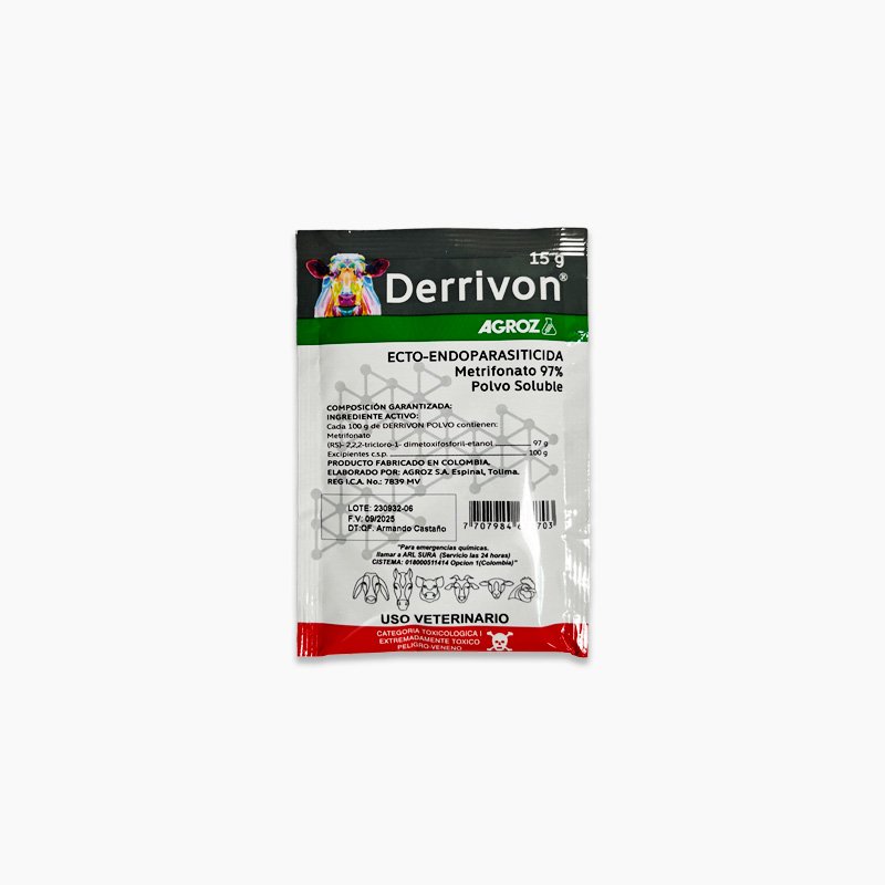 Derrivon es un potente antiparasitario de confianza veterinaria diseñado para ofrecer una limpieza profunda contra los parásitos externos que atacan la piel de sus animales de producción. Su fórmula está especialmente diseñada para combatir la nucha o tupe, piojos, ácaros de la sarna y diversas moscas que pueden afectar la salud, el peso y la energía de bovinos, equinos y porcinos. Al ser un producto versátil que permite su aplicación mediante baños de aspersión o de forma localizada, facilita el manejo sanitario en diferentes tipos de explotaciones, garantizando una protección efectiva sobre el cuerpo del animal tratado. Es un tratamiento esencial para mantener el bienestar del hato y proteger también la rentabilidad de la finca al evitar daños en los cueros y mejorar la tranquilidad del ganado. Su uso periódico asegura animales con piel sana y un crecimiento libre de molestias externas.