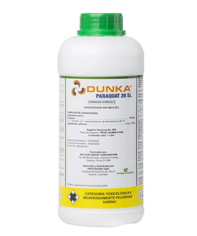 Dunka 20 SL es un herbicida agrícola no selectivo de contacto, formulado como líquido soluble (SL) con paraquat (200 g/L) como ingrediente activo. Está diseñado para el control rápido y eficaz de malezas emergidas en diversos sistemas de producción, eliminando la competencia de vegetación no deseada con el cultivo principal antes o después de la siembra.