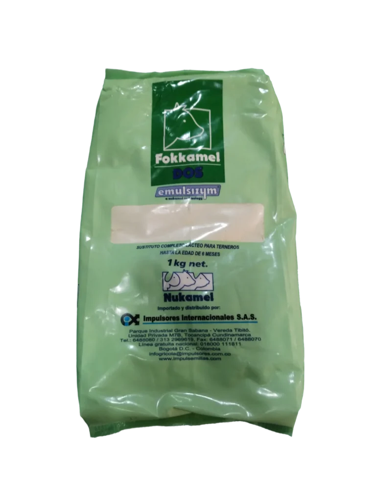 Leche en Polvo Fokkamel es un producto nutricional en polvo especialmente formulado para cachorros, terneros y animales jóvenes, diseñado para proporcionar un aporte completo y balanceado de nutrientes esenciales, proteínas de alta calidad, grasas, vitaminas y minerales, que permiten garantizar un crecimiento saludable, desarrollo óptimo del sistema inmunológico y fortaleza general de los animales. Su composición está orientada a reemplazar o complementar la leche materna en etapas críticas de desarrollo, asegurando una nutrición completa y eficiente en cada etapa del crecimiento.