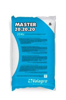 Master 20‑20‑20 de Valagro es un fertilizante agrícola hidrosoluble microcristalino que aporta nitrógeno (N), fósforo (P₂O₅) y potasio (K₂O) en proporciones equilibradas (20 % cada uno), junto con una selección de micronutrientes quelatados (Fe, Mn, Zn, Cu y B) para asegurar una nutrición integral y prevenir deficiencias durante las fases críticas del desarrollo de los cultivos. Este balance NPK favorece la síntesis de proteínas, el desarrollo radicular, la transferencia de energía (ATP), la regulación osmótica y la movilización de carbohidratos, procesos fisiológicos que sustentan tanto el crecimiento vegetativo como las etapas reproductivas, incluyendo floración, cuajado y llenado de frutos.