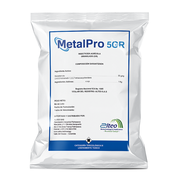 Metalpro de Alteo es un insecticida agrícola diseñado para el manejo eficiente de insectos plaga de importancia económica en distintos sistemas productivos. Su formulación permite una acción efectiva tanto por contacto directo como por ingestión, lo que asegura el control de los insectos al entrar en contacto con el producto o al alimentarse de los tejidos tratados. Esta doble vía de acción contribuye a una reducción rápida de las poblaciones presentes en el cultivo.