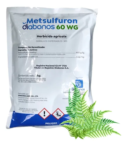 Metsulfuron de Diabonos es un herbicida agrícola selectivo y sistémico formulado como gránulos dispersables en agua (WG) con metsulfuron-metilo como ingrediente activo. Está orientado al control post-emergente de malezas de hoja ancha, especialmente en cultivos tolerantes y en aplicaciones para manejo de vegetación en potreros, arroz y barbechos químicos, actuando a dosis muy bajas debido a su alta potencia.
