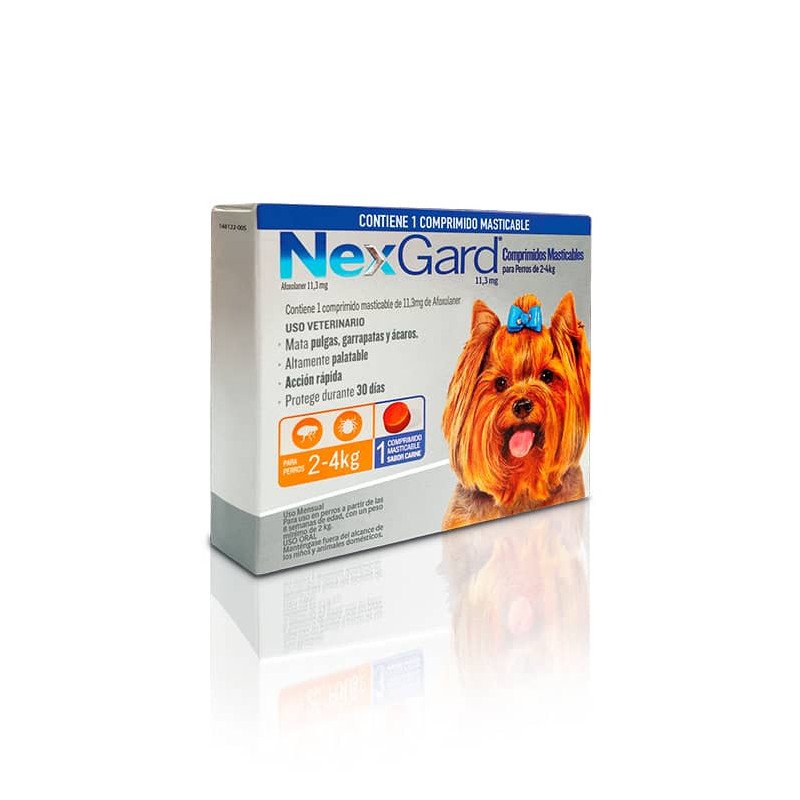 NexGard Perros es una tableta masticable que ofrece una solución de confianza veterinaria para el control mensual de pulgas y garrapatas en canes de tamaño miniatura. Su principio activo actúa sistémicamente desde la sangre del perro para eliminar parásitos existentes y prevenir nuevas infestaciones durante un mes completo. Su fórmula está diseñada para actuar de forma segura en el organismo del animal y cuenta con un sabor altamente palatable que facilita la administración oral como si fuera un premio. Es un tratamiento esencial para mantener el bienestar de su mascota canina y proteger también la salud de la familia y el hogar al romper el ciclo de vida de los parásitos y mantener el ambiente libre de plagas. Su uso periódico asegura una vida activa y libre de molestias causadas por picaduras de insectos.