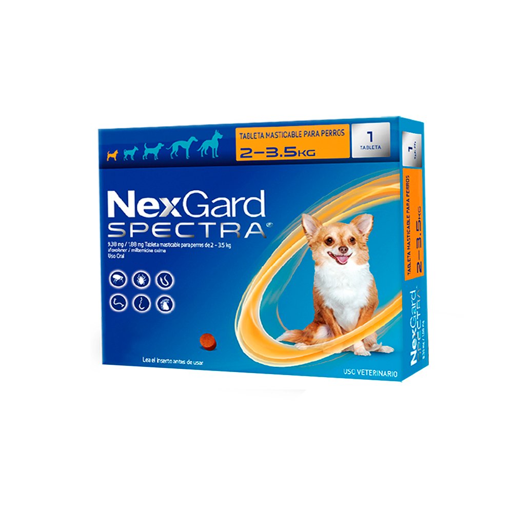 NexGard Spectra Perros es un endectocida de confianza veterinaria que se presenta en formato de tableta masticable con sabor a carne, facilitando su administración mensual. Su fórmula combina Afoxolaner y Milbemicina Oxima para ofrecer una limpieza profunda contra la mayoría de los parásitos internos y externos que afectan a los caninos. Es ideal para perros de peso bajo, garantizando una protección completa y continua durante un mes. Este tratamiento es esencial para mantener el bienestar de su mascota canina y proteger también la salud de la familia al reducir la carga parasitaria en el hogar y el ambiente. Su uso periódico asegura perros sanos, activos y libres de una amplia gama de huéspedes indeseados que pueden comprometer su salud general.