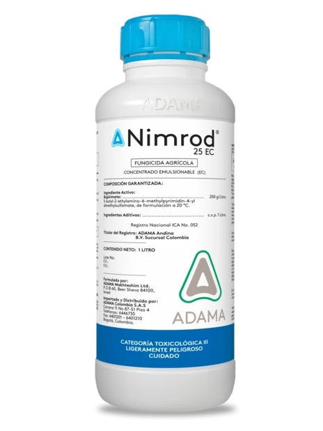 Nimrod es un fungicida sistémico diseñado para el manejo especializado de enfermedades causadas por hongos del grupo de los oídios, los cuales afectan seriamente el desarrollo vegetativo, la fotosíntesis y la calidad final de los cultivos. Su ingrediente activo pertenece a un grupo químico con un modo de acción específico que interfiere en procesos clave del metabolismo del hongo, inhibiendo su crecimiento y evitando la formación y diseminación de nuevas esporas.