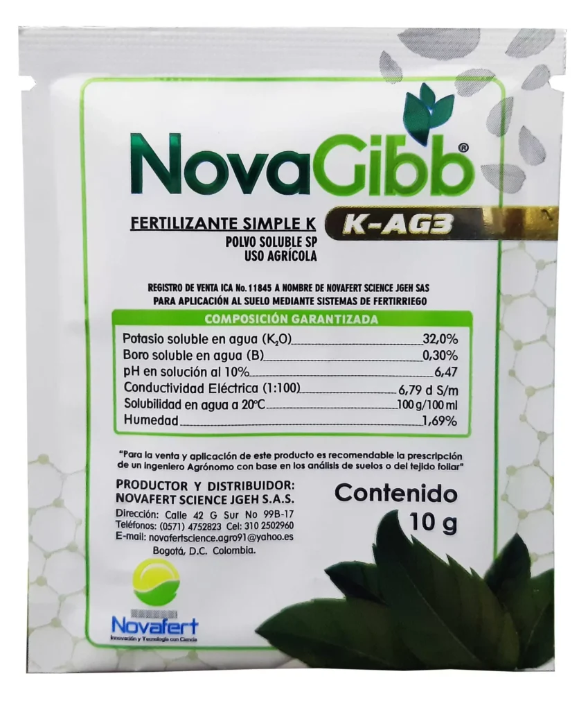 Novagibb es un regulador de crecimiento vegetal de uso agrícola profesional cuya acción se basa en la aplicación de giberelinas, un grupo de fitohormonas naturales presentes en las plantas que regulan aspectos fundamentales del desarrollo. Las giberelinas influyen en procesos fisiológicos como la división y elongación celular, la liberación de dormancia en yemas y semillas, el crecimiento de tallos y brotes, la inducción y el mejor cuajado de frutos, así como en la síntesis de enzimas relacionadas con la germinación y crecimiento activo.