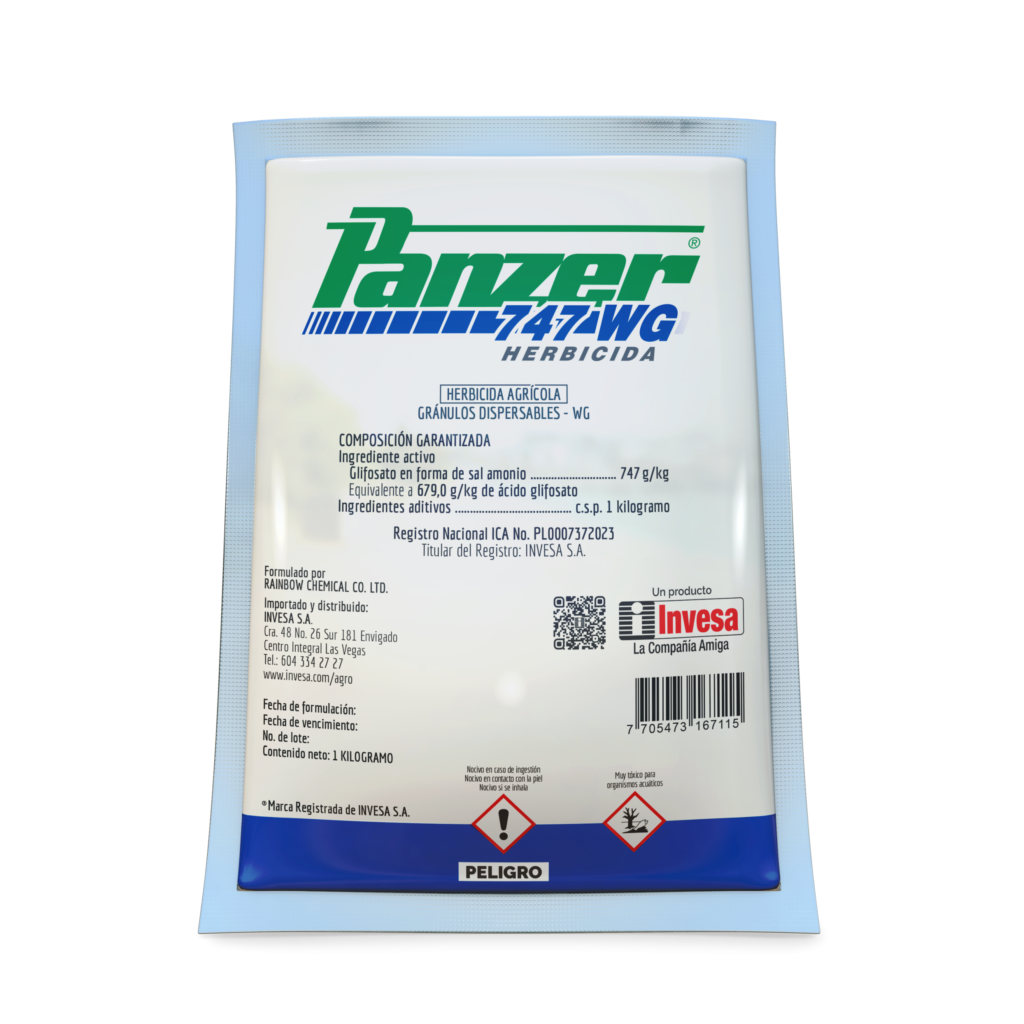 Panzer 747 WG es un herbicida agrícola no selectivo y sistémico, formulado como granulado dispersable en agua (WG) con glifosato en forma de sal amoniacal (747 g/kg) como ingrediente activo. Está diseñado para el control total de malezas emergidas, actuando eficazmente sobre un amplio espectro de especies vegetales que compiten con cultivos u objetivos deseados.