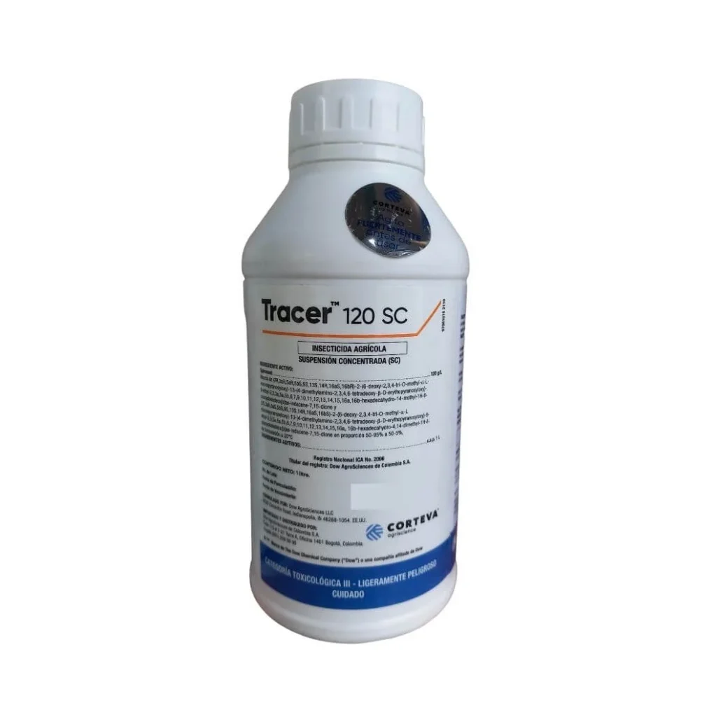 Tracer es un insecticida agrícola de origen natural formulado en suspensión concentrada con spinosad como ingrediente activo. Este compuesto se obtiene por fermentación de la bacteria Saccharopolyspora spinosa y se clasifica en su propia clase química (spinosines), ofreciendo un control eficaz de insectos masticadores y trofolépticos por contacto, ingestión y acción estomacal, con impacto mínimo en insectos benéficos y alta compatibilidad con programas de manejo integrado de plagas (MIP).