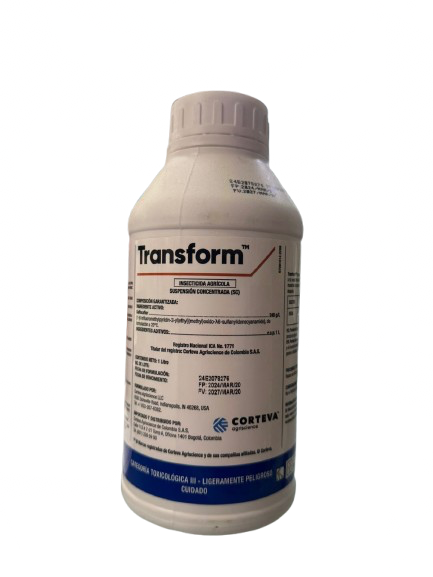 Transform es un insecticida agrícola sistémico y translaminar de nueva generación formulado para el control eficaz de insectos chupadores y succionadores, como pulgones, mosca blanca y otros fitófagos, mediante acción tanto por contacto como por ingestión. Su fórmula proporciona rápido cese de alimentación de las plagas, efecto residual prolongado y movimiento dentro de la planta para alcanzar tejidos nuevos y protegidos.