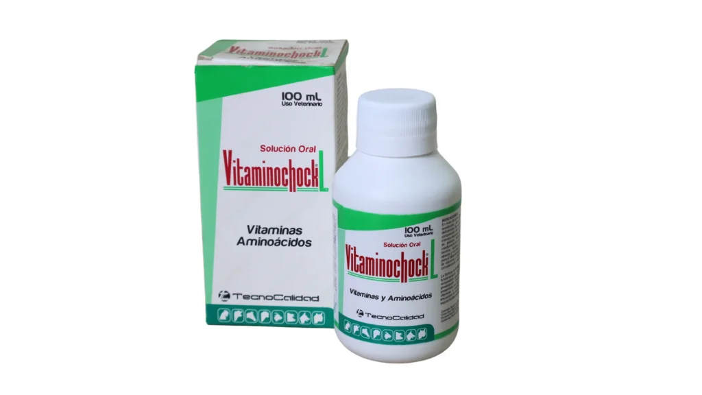 El uso de Vitaminochock está indicado en perros, gatos, bovinos, equinos, porcinos y aves de producción, especialmente en periodos de crecimiento, lactancia, convalecencia post-enfermedad, estrés por transporte, actividad física intensa o cualquier condición que requiera un aporte integral de vitaminas y minerales para mantener la energía, vitalidad y salud general del animal. Su administración permite una absorción rápida y eficiente de los nutrientes, asegurando que cada componente actúe de manera inmediata en la optimización del estado físico, la recuperación del animal y la prevención de deficiencias nutricionales, contribuyendo al mantenimiento de la salud integral, el rendimiento y el bienestar general en todas las etapas de la vida.