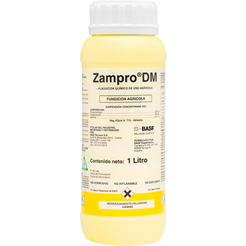 Zampro es un fungicida agrícola de alta eficacia, formulado como una mezcla de ingredientes activos con acción complementaria para el control de enfermedades causadas por oomicetos. Ofrece una protección sólida y confiable en el follaje, ayudando a prevenir daños severos en el cultivo y a mantener un desarrollo sano y productivo incluso bajo alta presión de enfermedad.
