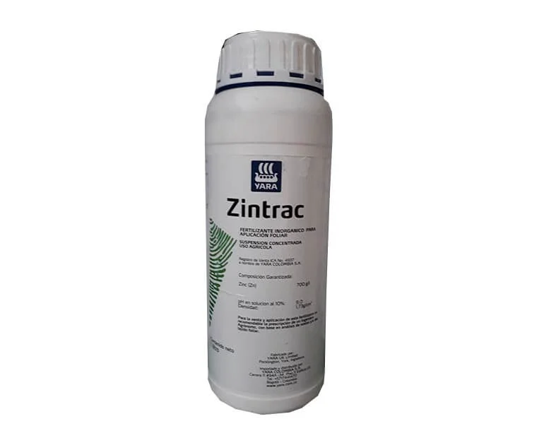 Zintrac es un fertilizante agrícola micronutriente foliar formulado con zinc (Zn) quelatado, diseñado para corregir y prevenir deficiencias de zinc en plantas. Su aplicación favorece funciones fisiológicas esenciales como la síntesis de auxinas, activación de enzimas y producción de clorofila, contribuyendo a un crecimiento vegetativo más vigoroso, mayor cuajado de flores y mejor calidad de cosecha.